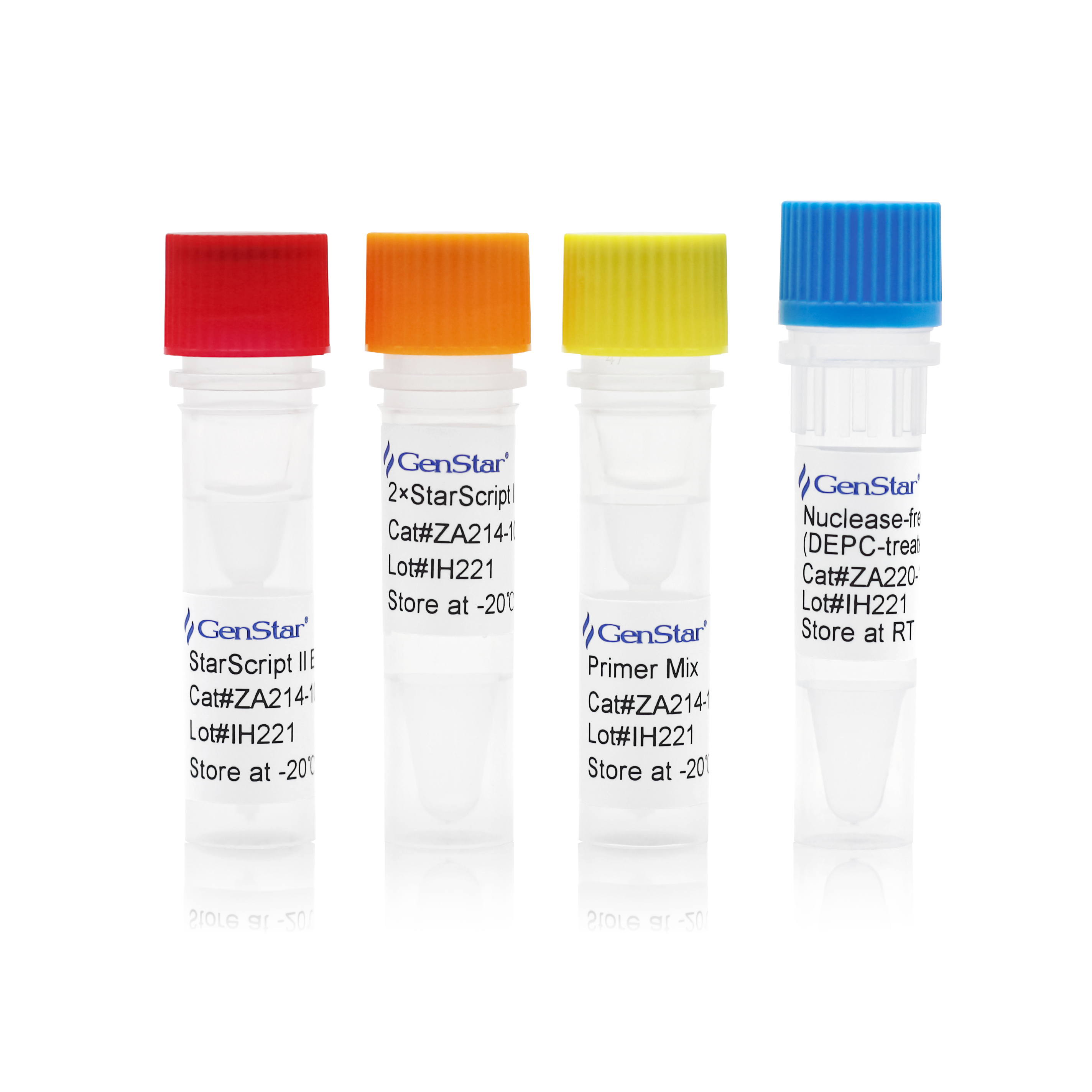 本產品是專為兩步法 RT-PCR 第一步實驗而設計的高靈敏度第一鏈 cDNA 合成預混體系,可以從極低量的總 RNA 或 poly(A) mRNA 合成第一鏈 cDNA,無需額外添加 RNase 抑制劑(已預混在 StarScript II Enzyme Mix 中),合成的 cDNA 產量更高,長度可達 15 kb。 使用方便,對后續的 PCR 或定量 PCR 實驗兼容性好,適合于各種耐熱 DNA 聚合酶。