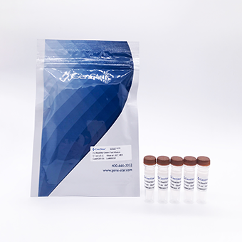 本產(chǎn)品是采用 SYBR Green I 嵌合熒光法進(jìn)行實(shí)時(shí)熒光定量 PCR 的專用 2× 濃度預(yù)混液。產(chǎn)品含有優(yōu)化濃度的 GenStar Power HSTaq DNA Polymerase、SYBR Green I、dNTPs、Mg2+、反應(yīng)緩沖液和穩(wěn)定劑等成分。主要用于基因組 DNA 靶序列和 RNA 反轉(zhuǎn)錄后 cDNA 靶序列的檢測。Power HSTaq DNA Polymerase 在 75℃ 以下溫度沒有活性,從而有效避免在常溫條件下由引物和模板非特異性結(jié)合或引物二聚體而產(chǎn)生的非特異性擴(kuò)增,酶的激活需要 95℃ 孵育10 min。反應(yīng)體系可在室溫下配制,無需在冰上完成,操作方便。優(yōu)化濃度的 SYBR Green I 熒光染料,特異性地?fù)饺?nbsp;DNA 雙鏈后,熒光信號增強(qiáng),而不摻入鏈中 SYBR Green I 染料分子熒光信號不變,從而保證熒光信號的增加與 PCR 產(chǎn)物的增加完全同步,熒光可以在退火或延伸階段測定。