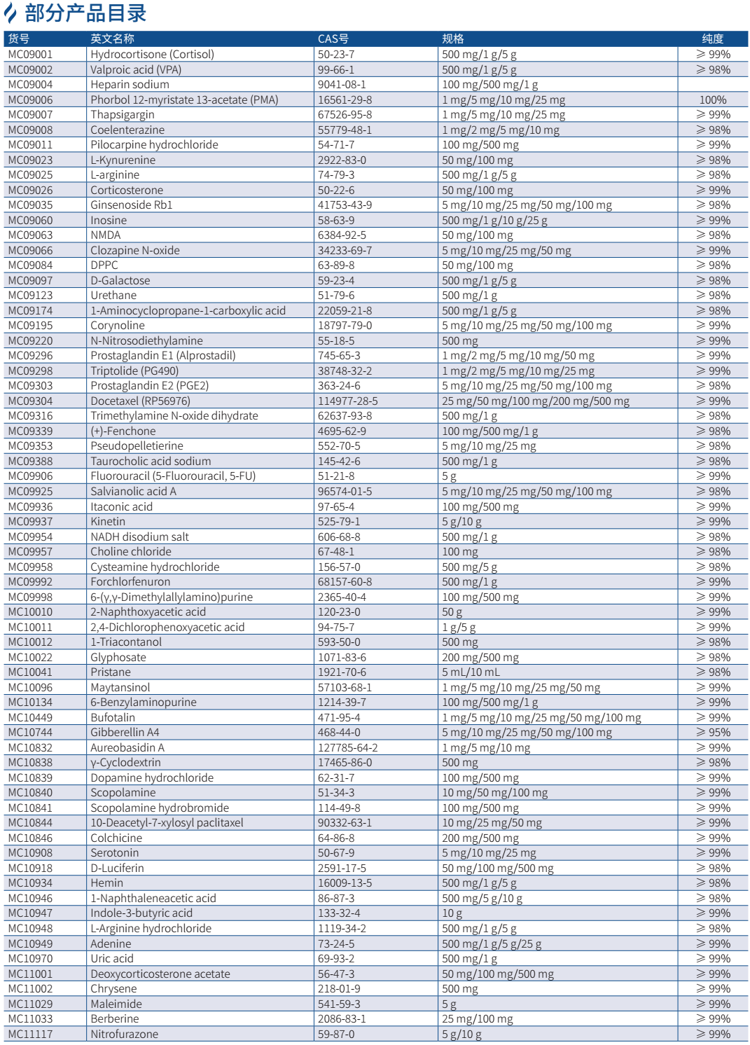 本界面只顯示部分產品信息,若想獲取更多小分子系列產品信息,請聯系我們銷售或致電技術支持熱線:400-666-3332